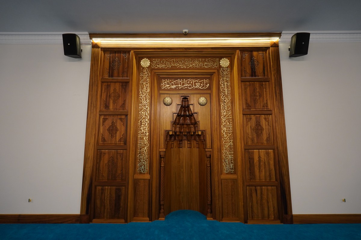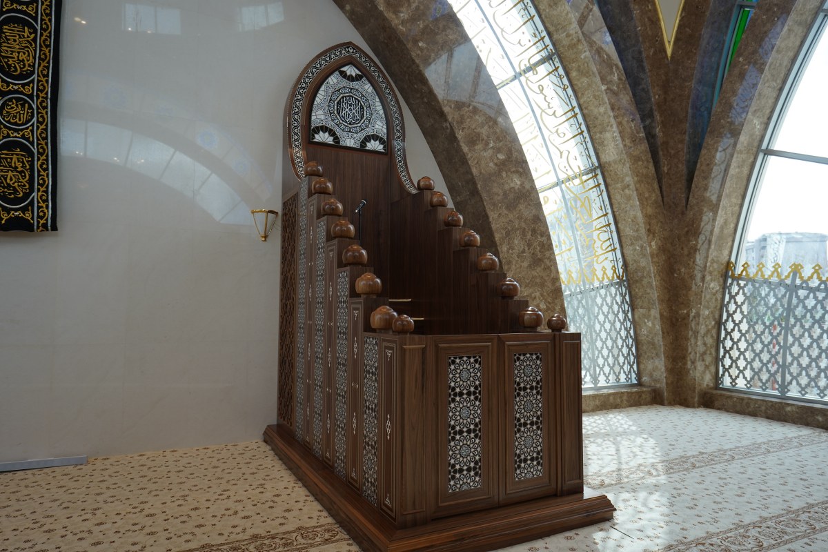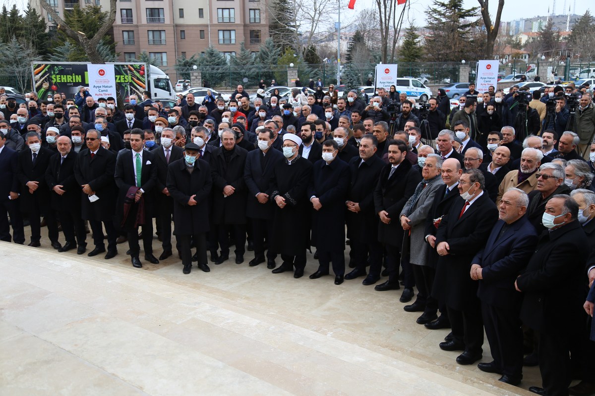 Hayırsever iş insanı Süreyya Özden tarafından annesi adına yaptırılan Ayşe Hatun Cami’nin yapımına 2017 yılı Ağustos ayında başlanmış, 2022 yılı Şubat ayında tamamlanmıştır. Modern, özgün mimari ve tasarımıyla dikkat çeken caminin yapımında estetik, zarafet ve kalite esas alınmıştır. Camide huzurlu bir ibadet ortamı ile kolay ve rahat kullanımı sağlamak için gerekli teknik imkan ve donanımlar kullanılmıştır. Yaklaşık 1800 cemaat kapasitesi olan caminin dış cephesi ve içi doğal taş ile kaplanmış, kapıları Mescid-i Nebevinin kapılarının benzeri olarak yapılmıştır. Ceviz ağacından yapılan minber ve vaaz kürsüsüne sedef kakma uygulanmıştır. Minbere “La ilahe illallah”, vaaz kürsüsüne “Muhammedün Rasulüllah” yazısı işlenmek suretiyle Kelime-i Tevhid vurgulanmıştır. Ka’be kapısı şeklinde tasarlanmış olan Mihrabın üzerine, aslına uygun olarak yaptırılan Ka’be örtüsünden bir parça asılmıştır. Mihrab cephesindeki camlı alanın üzerine Bakara Suresinin son iki ayeti (Amenerrasulü) yazılmıştır. Aslan göğüslerindeki hat yazıları şunlardır: Ya Kadıye’l- Hacat (Ey ihtiyaçları karşılayan) Ya Mucibe’d- Deavat (Ey duaları kabul eden) Ya Semia’l-Esvat (Ey sesleri/yakarışları işiten) lstecib Duaene Ya Rab (Dualarımızı kabul eyle Ya Rab) Kubbenin ortasında İhlas Suresi, kubbeyi çevreleyen yürüyüş yolunun alın kısmında Besmele, Fatiha Suresi, Ayete’l-Kürsi ve Nur Suresinin 35. ayeti yazılıdır.