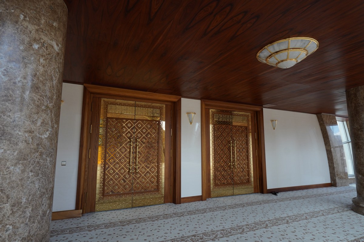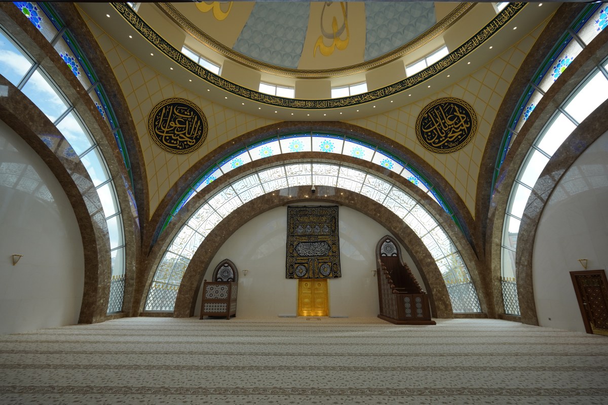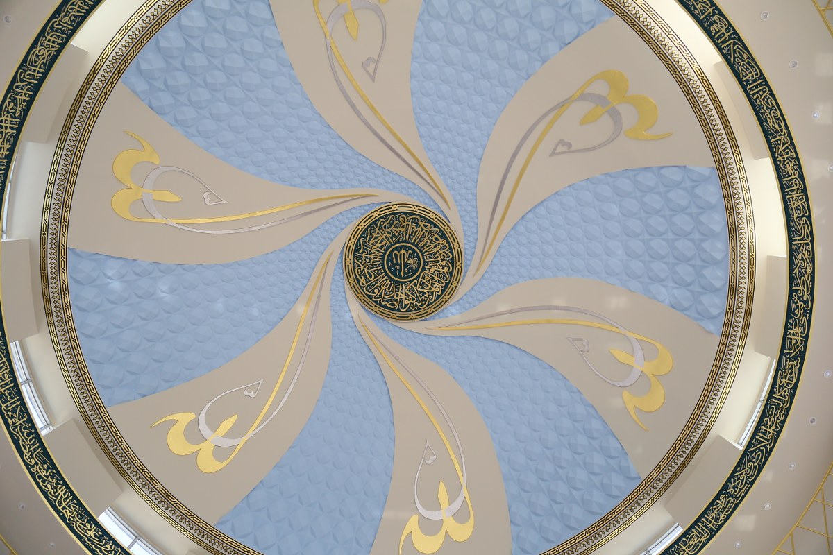 Kubbenin içinde çark-ı felek şeklinde yazılı olan 6 adet Lafza-i Celal (Allah lafzı) imanın 6 şartını, Mihrab ve vaaz kürsüsünün üzerinde yer alan motifler, Peygamber Efendimizin hicret esnasında sığındığı Sevr mağarasının girişine, onun dışardan görünmesini önlemek için örümcekler tarafından örülen ağı, Caminin vitrayların üzerindeki yıldızlar, Peygamber Efendimizin hicret yolculuğu sonunda Medine-i Münevvere’ye geldiği gün Onu karşılayan Medineli çocukların okudukları ilahide geçen Süreyya yıldızını, Yürüyüş yolunun altındaki 54 lamba 54 farzı, Sembolize etmektedir. Caminin hat yazıları ve nakış işlemelerinde 24 ayar altın varak kullanılmıştır. Cenab-ı Hak Ayşe Hatun Camii’nin cemaatini bol, hizmetlerini hayırlı ve bereketli eylesin.